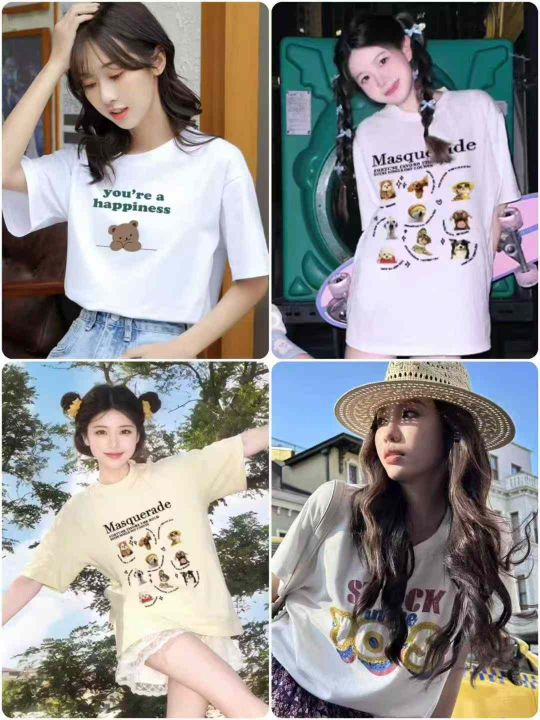 工厂回收1394件宽松慵懒风卡通印花高级棉质短袖T恤,码数S-5XL。版型质量好,宽松落肩显瘦,有独立包装。反季节超低价清仓!分货➕0.5