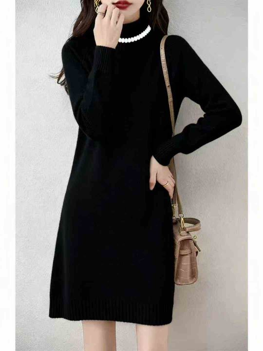 品牌原单秋冬新款宽松慵懒风高领套头连衣裙,独立包装...