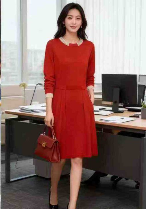 秋冬新款法式复古针织包芯纱毛衣连衣裙,独立包装,均...