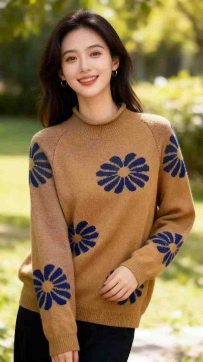 秋冬新款慵懒加厚时尚洋气宽松提花北极绒套头毛衣,独...