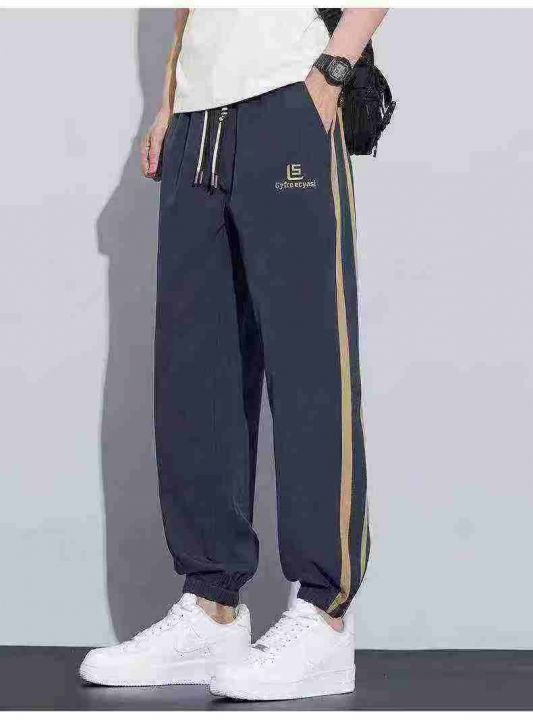 ☆春夏薄款杠条印花设计感束脚休闲裤,510件,M-3XL,...