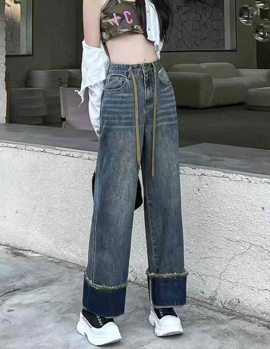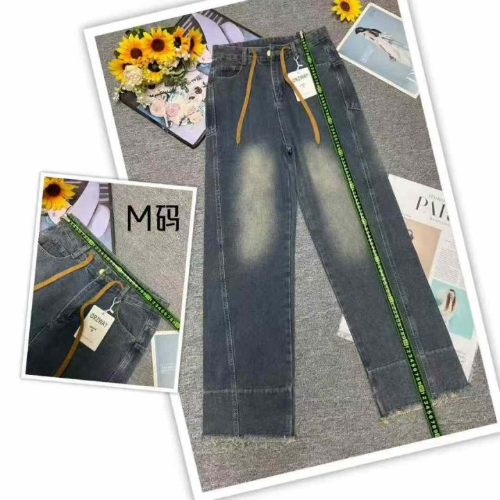 秋季新品设计款洗水棉网红爆款直筒阔腿遮肉显瘦抽绳牛仔裤,独立包装带吊牌,码数XS-L码,620件,腾仓库,全清9.9元亏本!分货加一!