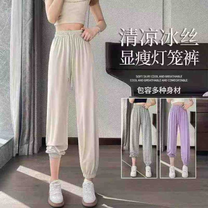 女冰丝束脚休闲运动裤薄款垂感显瘦灯笼裤慵懒山本裤子