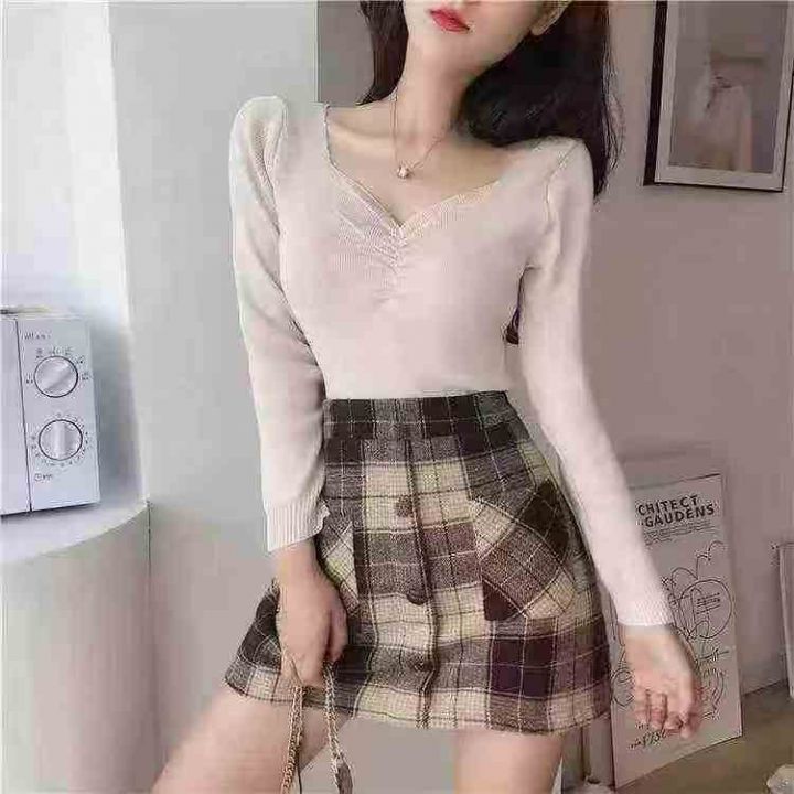 v领针织外穿内搭设计感小众长袖针织毛衣打底衫,独立...