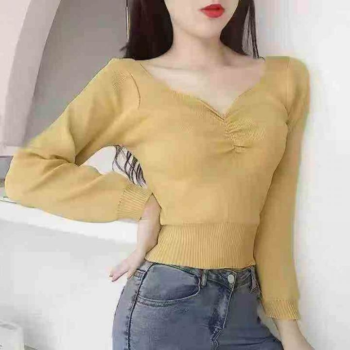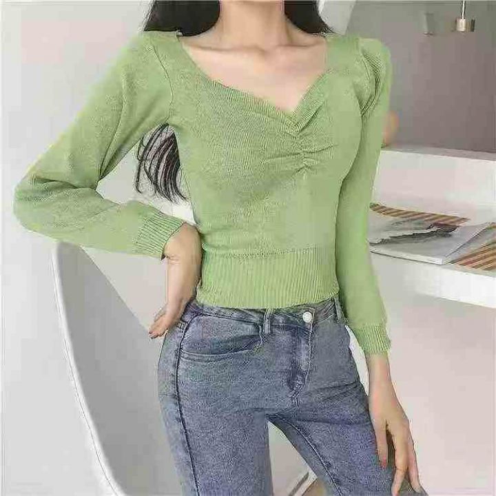 v领针织外穿内搭设计感小众长袖针织毛衣打底衫,独立包装,六个颜色,均码,2000件左右,清5.99元,分货加5毛