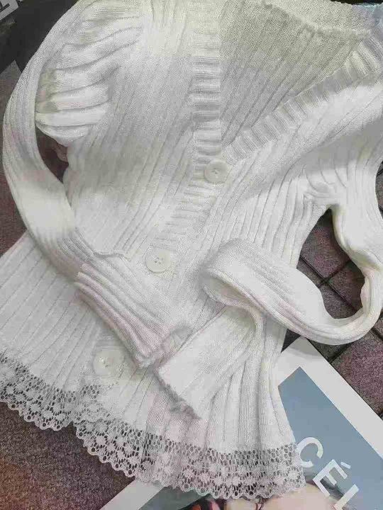 韩版2025chic长袖针织开衫女装外套毛衣春秋新款修身蕾丝边开衫,独立包装,均码,950件左右,清7.8,分➕1