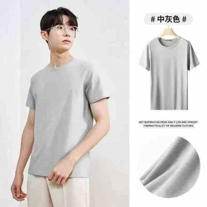 男士冰丝短袖T恤速干半袖新款夏季圆领上衣纯色体恤(后领包边)