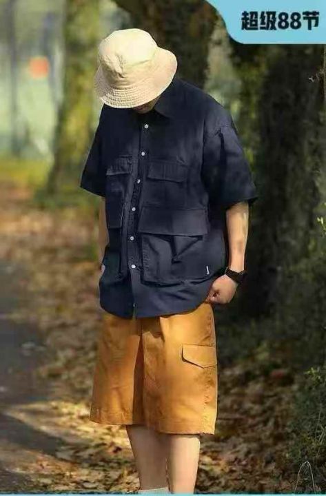 捡漏132件日系慵懒风气质短袖连帽工装衬衫,独立包装,单款单色,码数M-2XL,模特图仅供参考,货号109#14