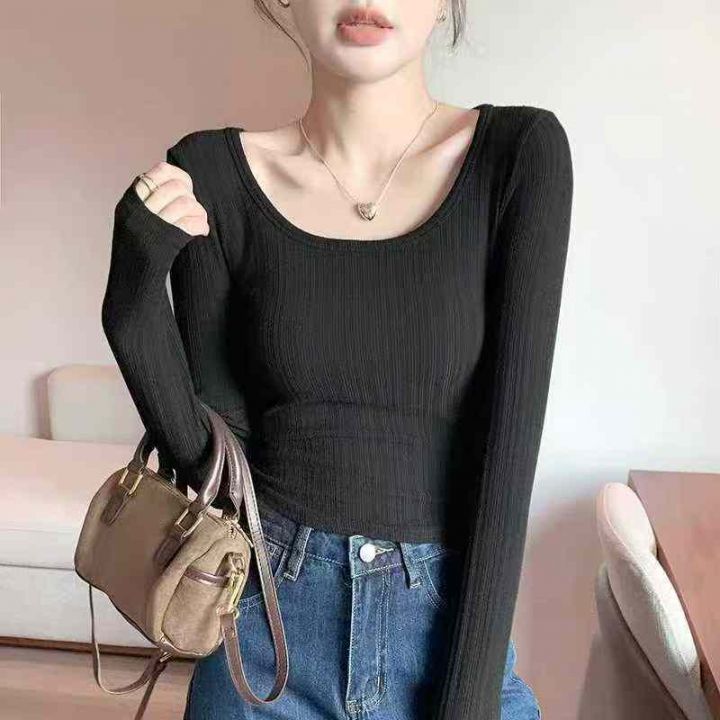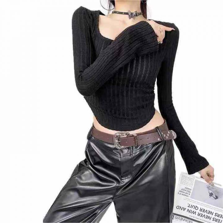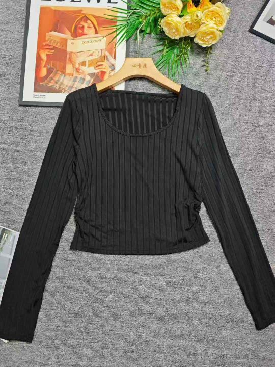 电商仓回收770件黑色辣妹收腰褶皱长袖T恤方领打底衫,码数S-2XL。面料柔软有弹力,百搭收腰显瘦,全部独立包装。分货+0.5