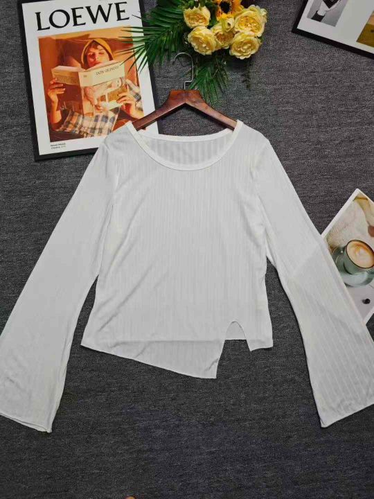 工厂回收582件韩系靓妹白色打底衫不规则设计感长袖T恤,码数S-2XL。面料有弹力,全部独立包装。分货+0.5