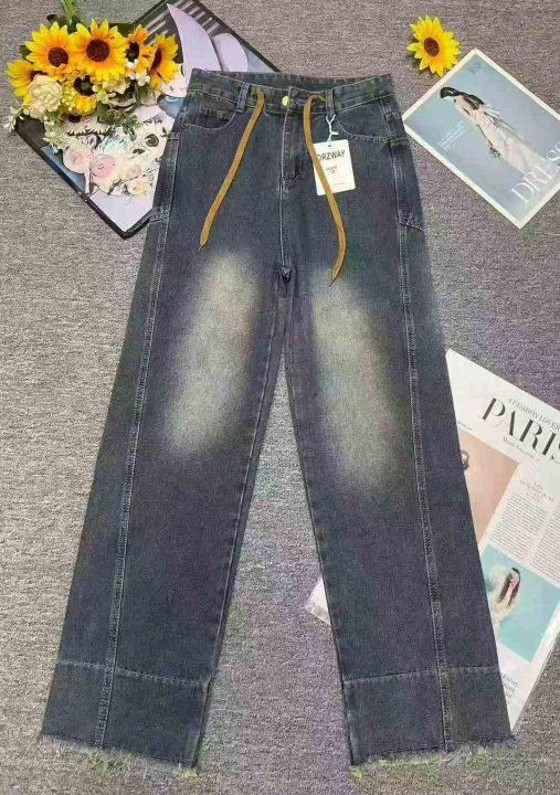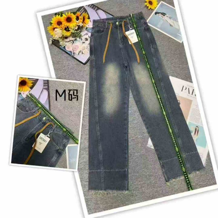 秋季新品设计款洗水棉网红爆款直筒阔腿遮肉显瘦抽绳牛仔裤,独立包装带吊牌,码数XS-L码,620件,腾仓库,全清9.9元亏本!分货加一!。 货号:1323