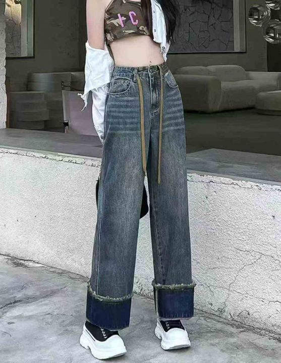 秋季新品设计款洗水棉网红爆款直筒阔腿遮肉显瘦抽绳牛...