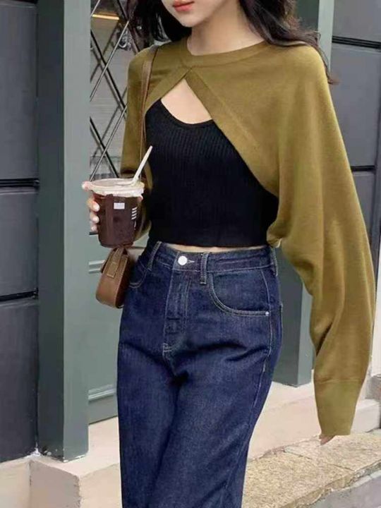 秋季新品小香风高级感时尚搭配甜酷辣妹针织毛衣+针织抹胸2件套,独立包装,均码面料软糯舒适弹力大,1120套,腾仓库,全清