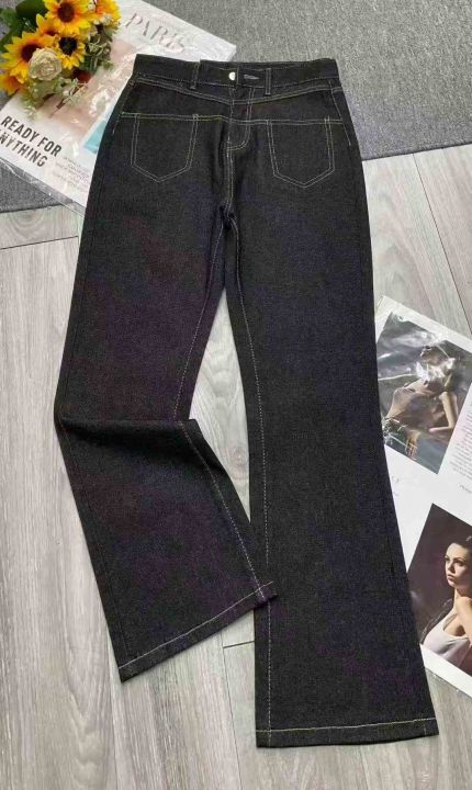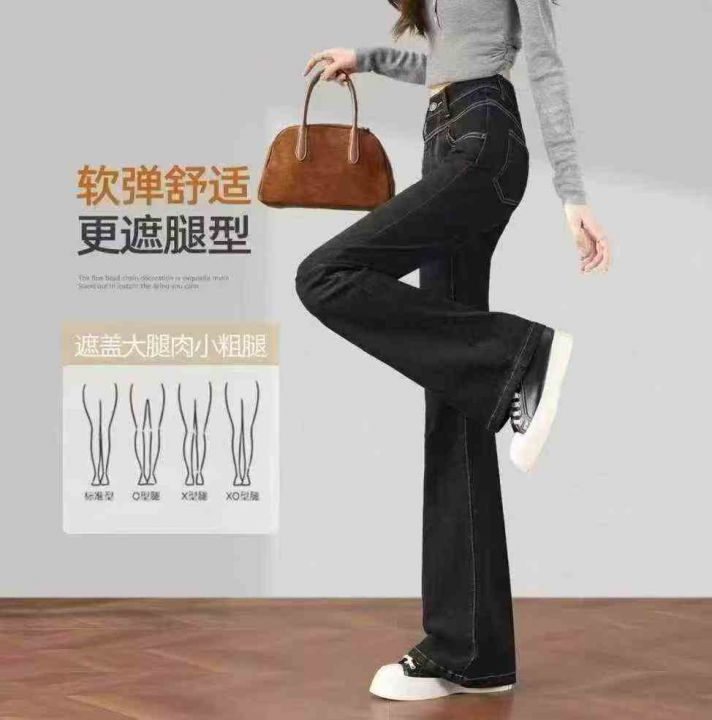 秋季新品洗水棉宽松百搭胖MM复古微喇叭牛仔长裤,独立...