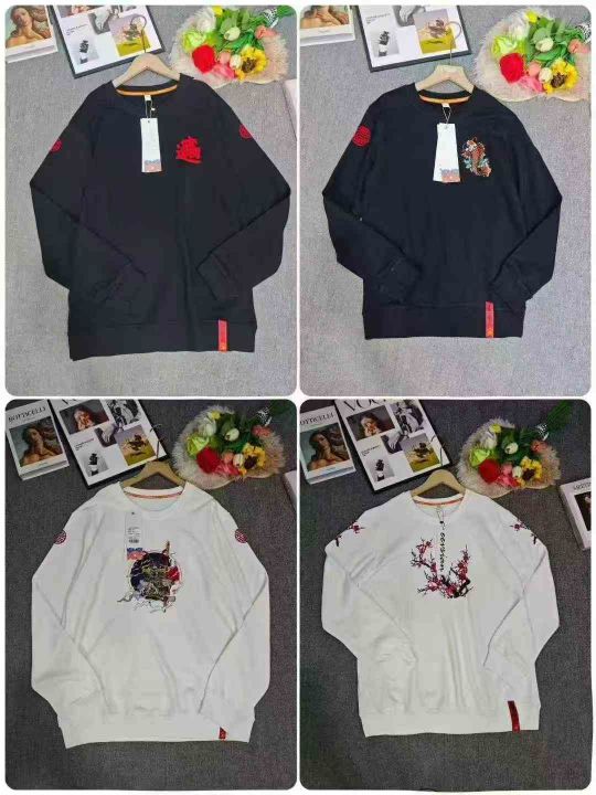 实体供应链回收2800件国风纯棉潮牌重工重磅刺绣圆领舒卫衣,码数S-5XL。面料柔软舒适,黑白色系为主,万针刺绣工艺,高克重面料,中山货做工非常好,全部独立包装!分货➕1