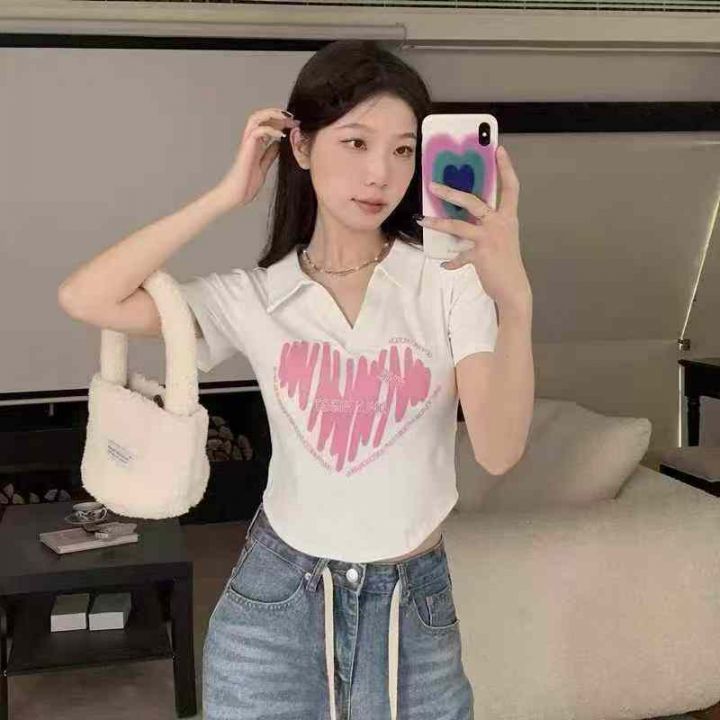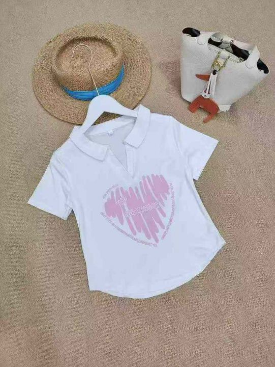 [月亮]:5.5清464件[月亮]:Polo领正肩深V辣妹短袖T恤...
