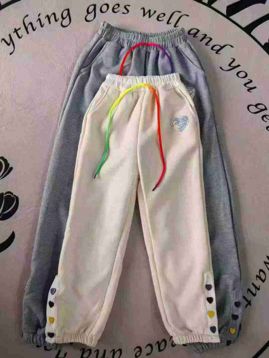 276件加绒小众设计华夫格中大童休闲排扣哈伦卫裤,码数110-160,整款2个色,小码多,140没有,独立包装