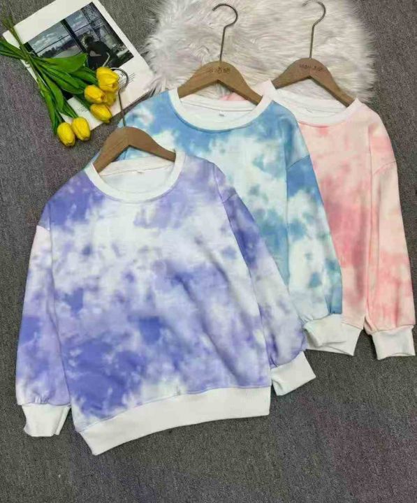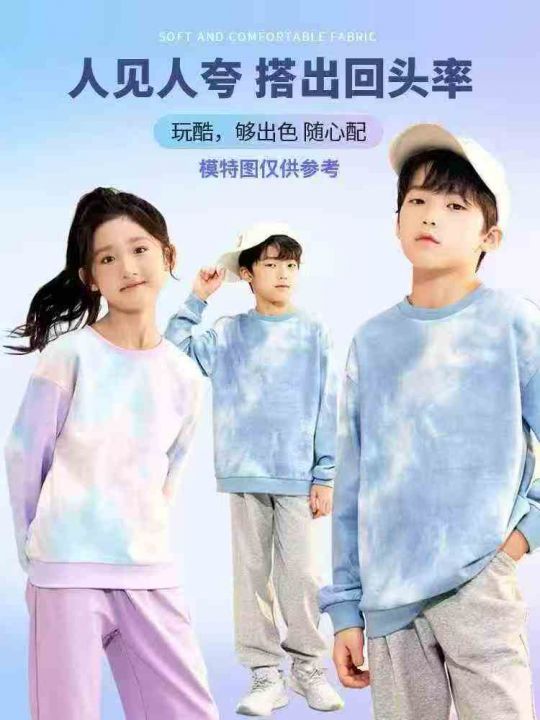 春秋长袖男女童洋气韩版扎染时尚休闲百搭圆领卫衣,独立包装,码数90-140码,数量461件,分货加1,货号1024#52。 货号:1323