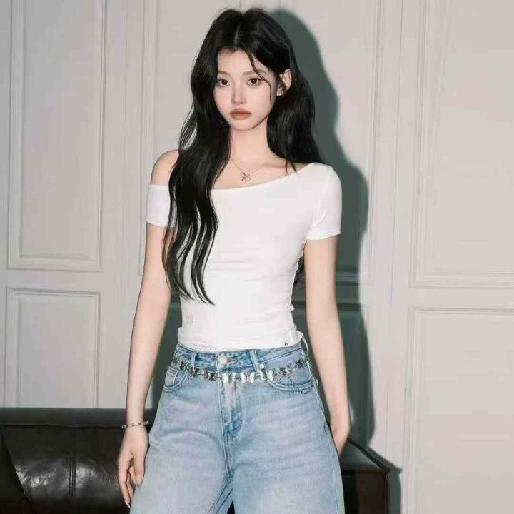 2.5清电商仓回收1166件纯欲性感斜肩短袖上衣,码数S-2...