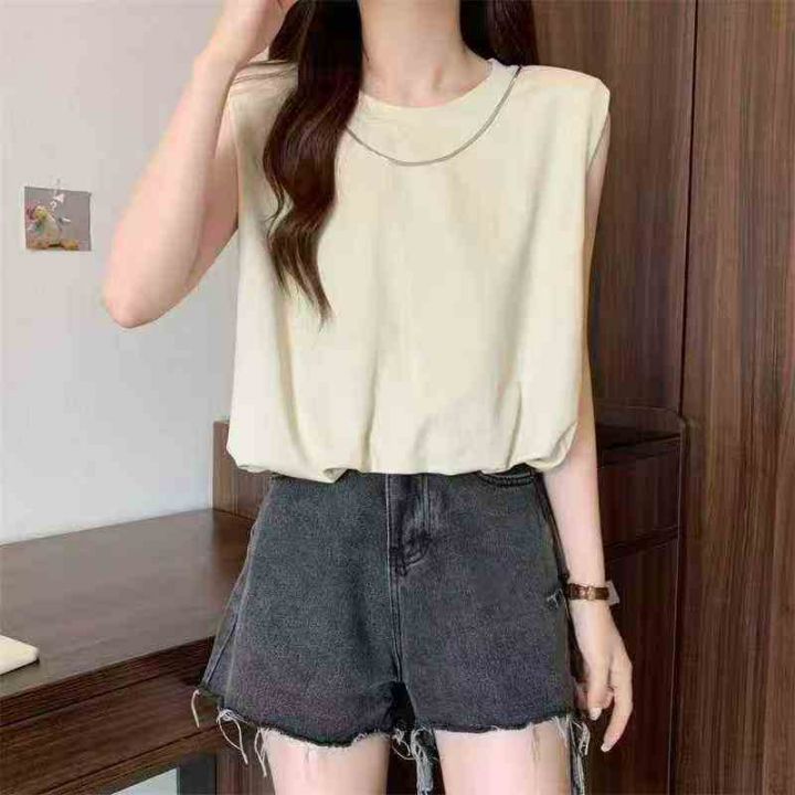 夏季圆领背心无袖t恤女时尚洋气减龄修身短款坎肩百搭...