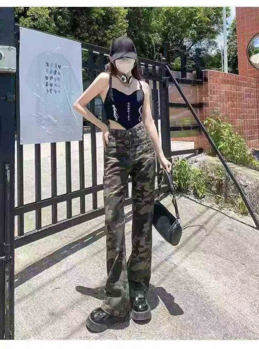 秋冬新款高品质洗水棉网红复古迷彩工装牛仔裤,独立包...