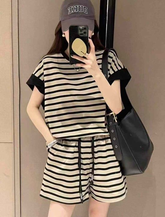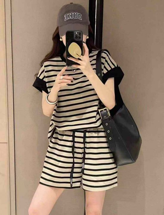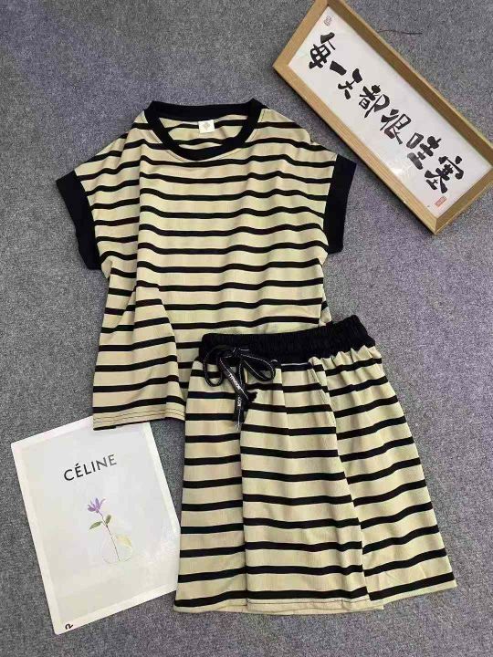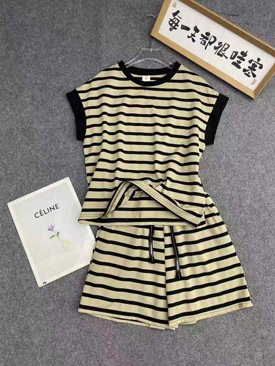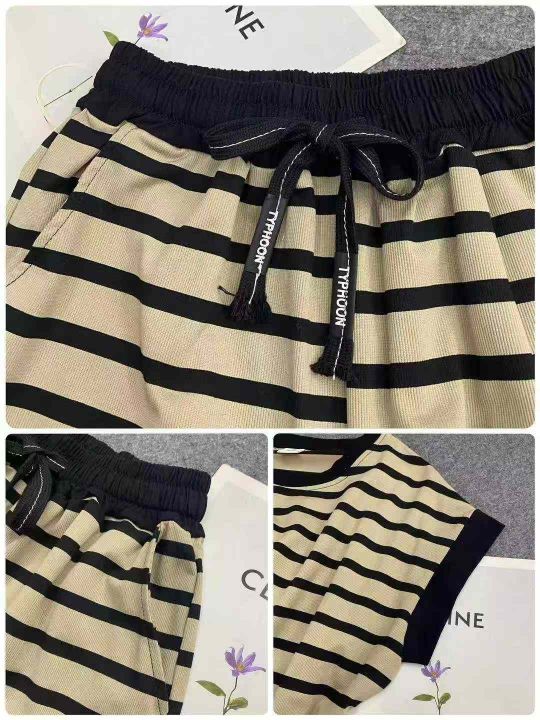 休闲条纹短袖套装189套9.9,面料柔软舒适,有弹力,条...