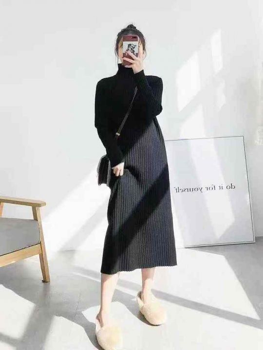 全清12.8102件广州十三行品牌 温柔风半高领针织连衣裙加厚内搭毛衣裙宽松坑...