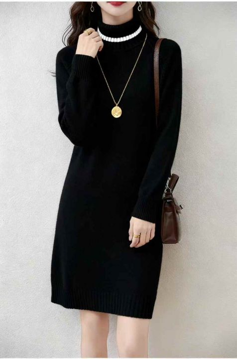 品牌原单秋冬新款宽松慵懒风高领套头连衣裙,独立包装...
