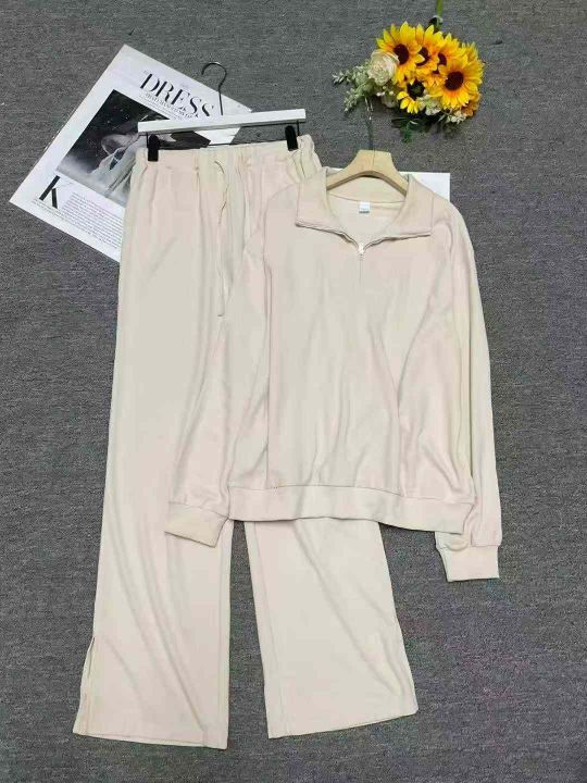 捡漏款,秋季新款女装弹力棉半拉链上衣+直筒阔腿裤2件套,独立包装,均码面...