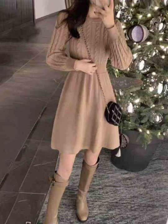 ① 法式复古针织秋冬装网红辣妹风超仙女长款毛衣裙!...