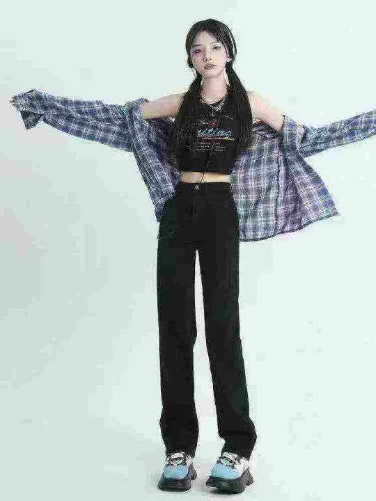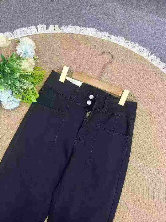 亏本清仓处理194件高品质水洗高腰修身黑色直筒牛仔裤...