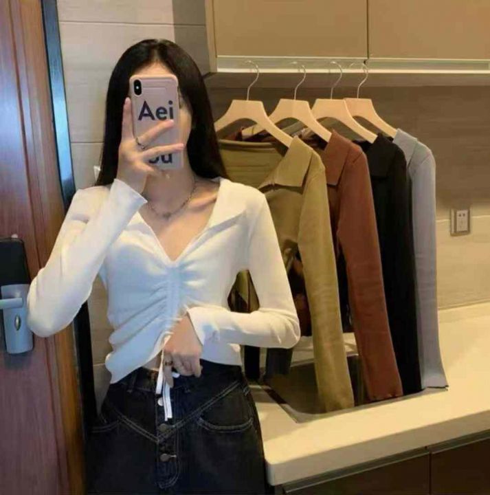 秋季新款韩版复古网红抽绳绑带设计款Polo领长袖针织套头毛衣,独立包装,均码面料柔软舒适弹力大,211件,全清7.9元超低价秒杀!