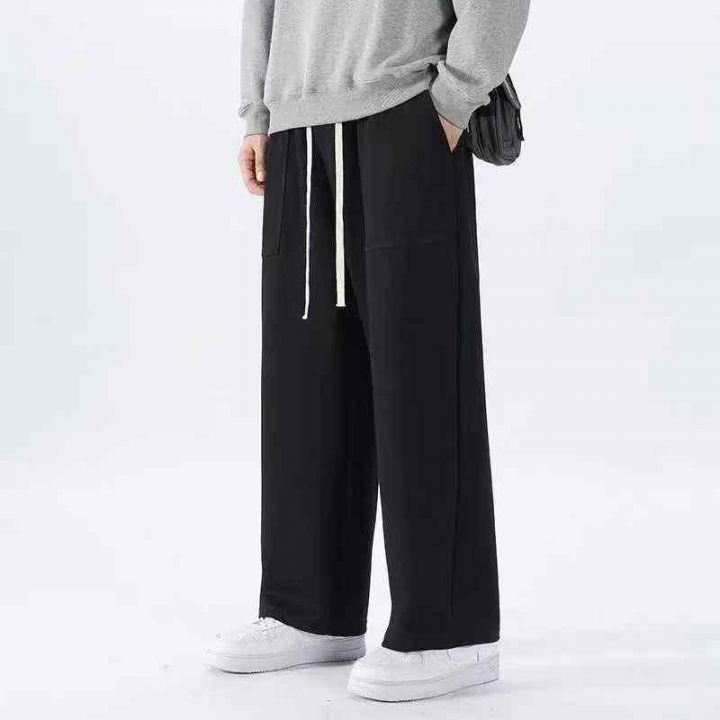 男装加绒纯棉运动卫裤男生宽松直筒阔腿休闲裤男款新款...