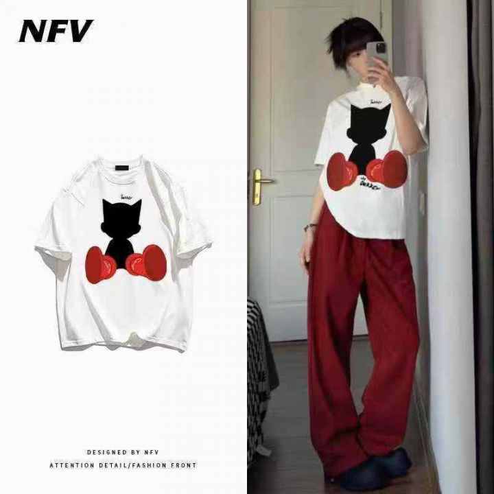 重磅纯棉国潮美式hiphop卡通短袖t恤女夏宽松设计感街头嘻哈情侣上衣332件全清9.9元,均码,单款单色,高档独立包装