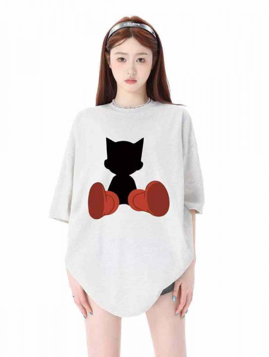 重磅纯棉国潮美式hiphop卡通短袖t恤女夏宽松设计感街...