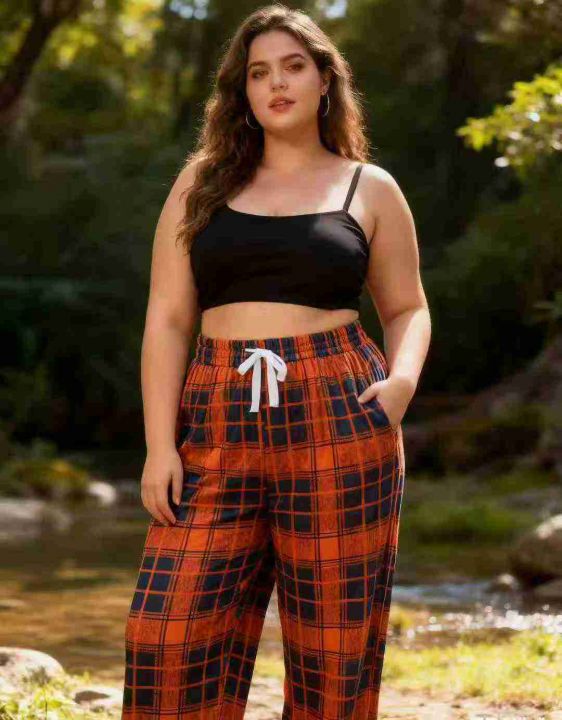 外贸休闲女裤微胖格子休闲裤,独立包装1到4XL码共255...