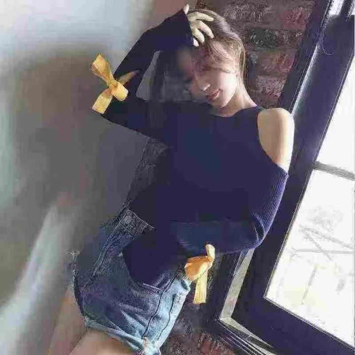 慵懒风毛衣女套头长袖韩国露肩上衣秋冬针织衫,独立包装均码,500件左右,清7.5。 货号:24862