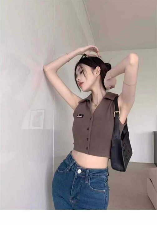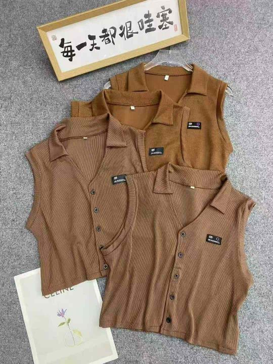 美式复古靓妹背心317件,清5.9Polo领,胸口小标,两种...
