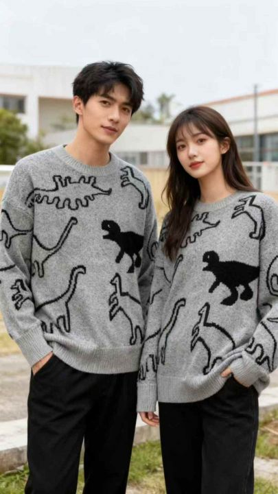 男女同款宽松慵懒风卡通提花圆领套头毛衣,独立包装,均码面料软糯舒适,184件,全清6.9元超低价秒杀!