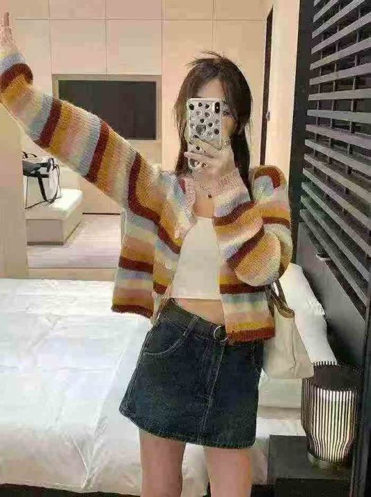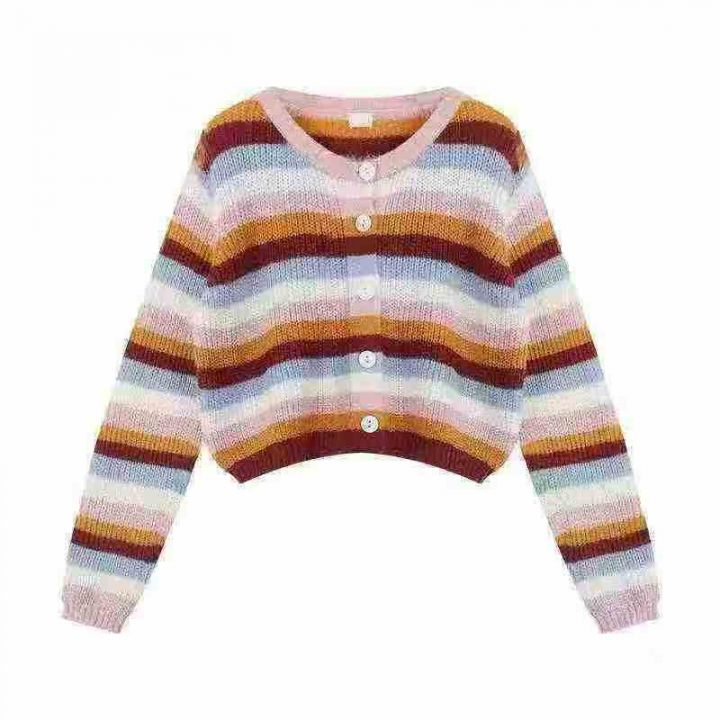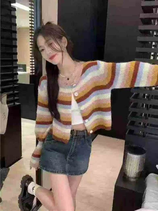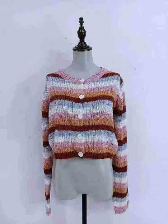 2025秋冬新款潮毛衣女显瘦休闲彩条针织外套开衫,独立...