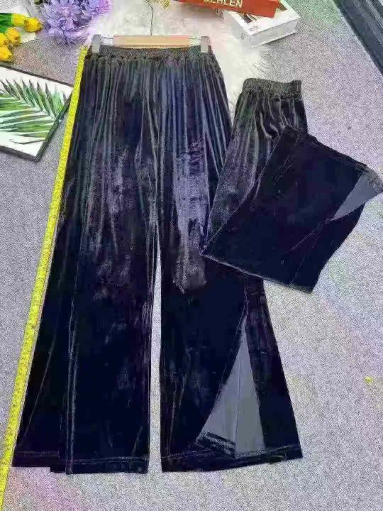 金丝绒秋冬新款垂坠感高腰显瘦百搭宽松高腰休闲开叉阔腿裤,独立包装,弹力大,码数S-4XL(1-7),数量331条