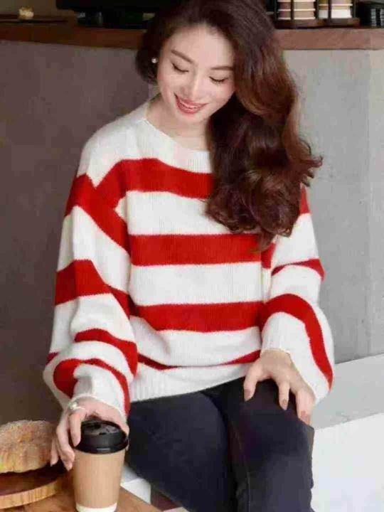 女装秋冬款复古撞色条纹ins港风大版厚重宽松毛衣针织衫上衣,独立包装,均码,633件,清8.8,分➕1。 货号:24862
