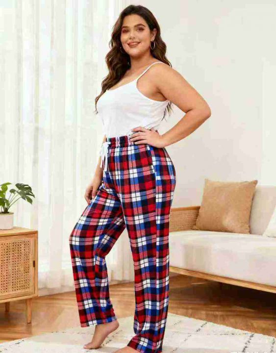 外贸休闲女裤微胖格子休闲裤,独立包装1到4XL码共255...