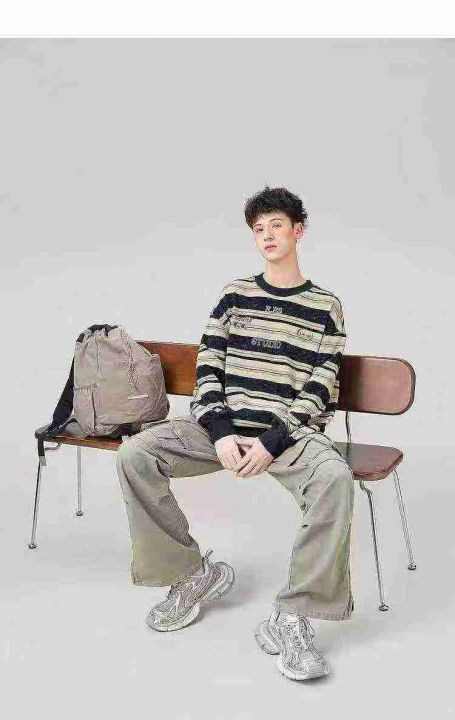 大码潮牌没计感大版型宽松痞帅鱼鳞布印花条纹卫衣,28...