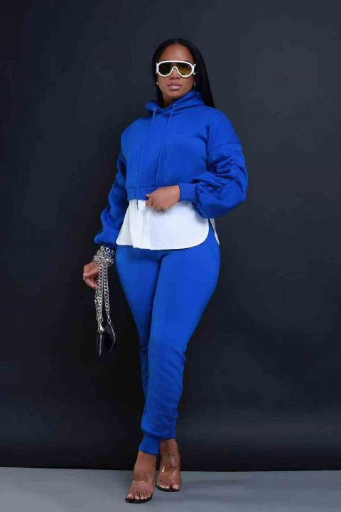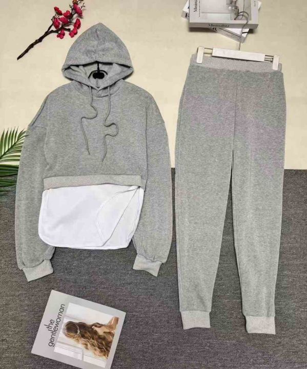 欧美时尚女装外贸休闲秋冬加绒款连帽卫衣套装,整款多色,数量205套左右,码数S-2XL,品质好,有独立包装。