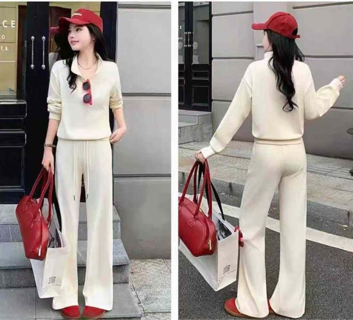 捡漏款,秋季新款女装弹力棉半拉链上衣+直筒阔腿裤2件...