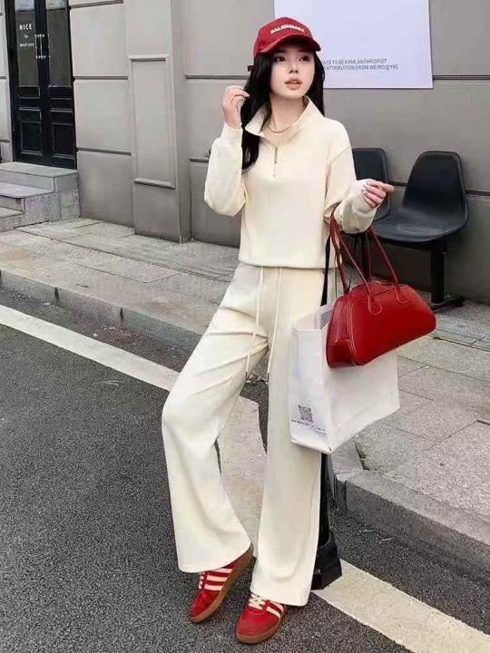 捡漏款,秋季新款女装弹力棉半拉链上衣+直筒阔腿裤2件...