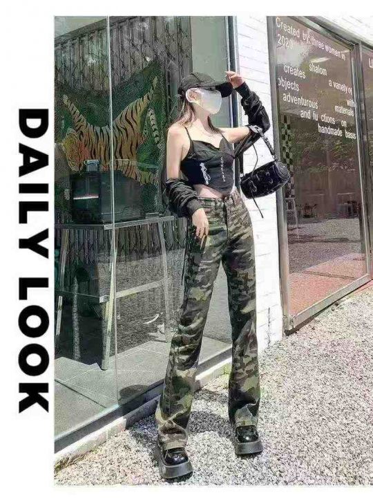 秋冬新款高品质洗水棉网红复古迷彩工装牛仔裤,独立包...