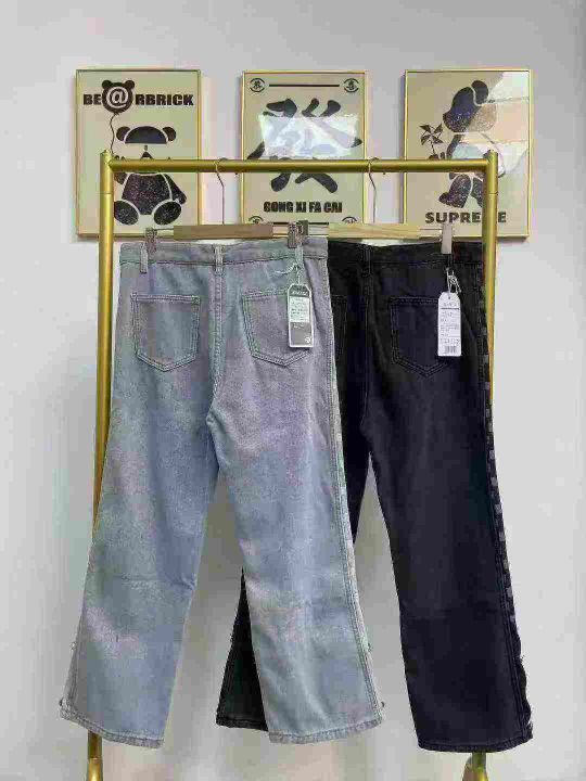 天猫在售款600件左右高品质美式潮牌高街棋盘格加绒加厚阔腿牛仔裤,单款两色,S-3XL,独立包装带吊牌。 货号:24862