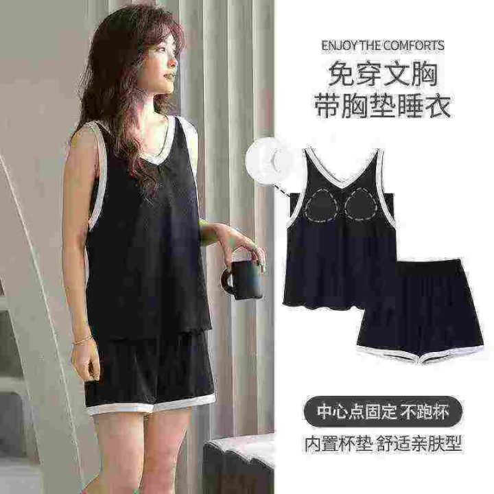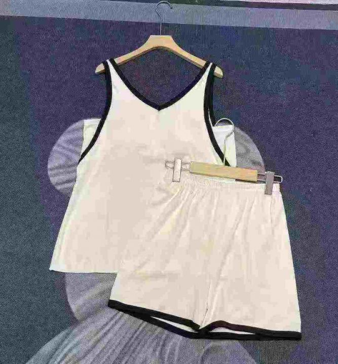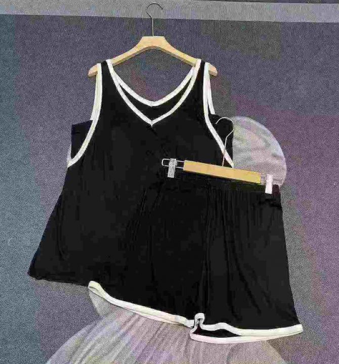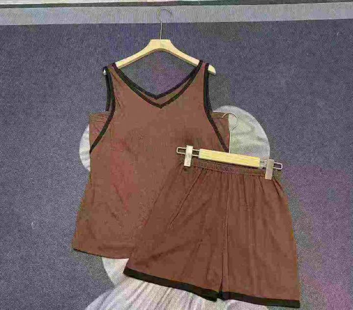 天猫在售款8000件左右高品质冰丝螺纹纯欲风女士宽松版家居服背心套装,高弹力带胸垫,单款三色,S-3XL,独立包装带吊牌。 货号:24862